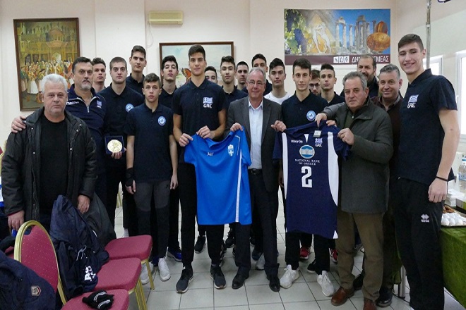 Ως ένδειξη ευγνωμοσύνης, οι αθλητές του αντιπροσωπευτικού συγκροτήματος έδωσαν στον Δήμαρχο κ. Φρούσιο μία φανέλα της Εθνικής ομάδας και αυτός από την πλευρά του έδωσε μία τιμητική πλακέτα στον ομοσπονδιακό προπονητή.